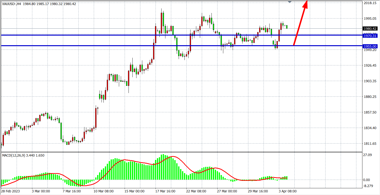 周一(4月3日)在欧佩克+成员国意外减产重燃市场对长期通胀的担忧并引发对美联储反应的不确定性后 ,美指一度上冲103关口,而后坐上“垂直过山车”,回吐日内全部涨幅并最终收跌。现货黄金低开高走,最终收涨0.79%。展望后市,欧佩克+减产对市场正如耶伦所言更多是负面的,黄金的补涨说明市场避险情绪仍挥之不去,趋势已形成,上涨仍是主旋律。