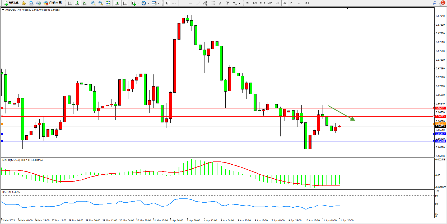 阻力位:0.66679 0.66781