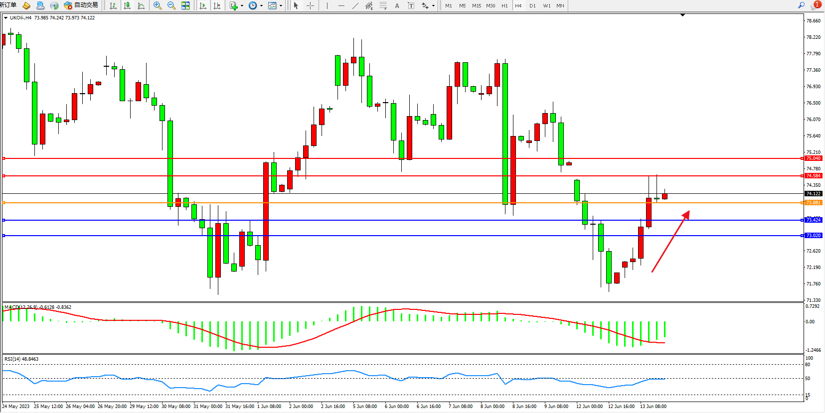 布油UKOil——4小时K线图显示:
