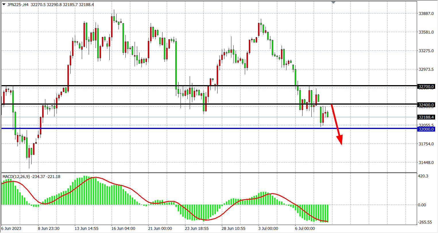 JPN225四小时图
