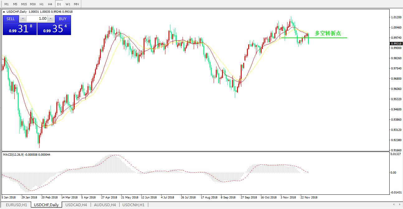 交易策略0.9974之下,看跌,目标价位为 0.9900 ,然后为 0.9850