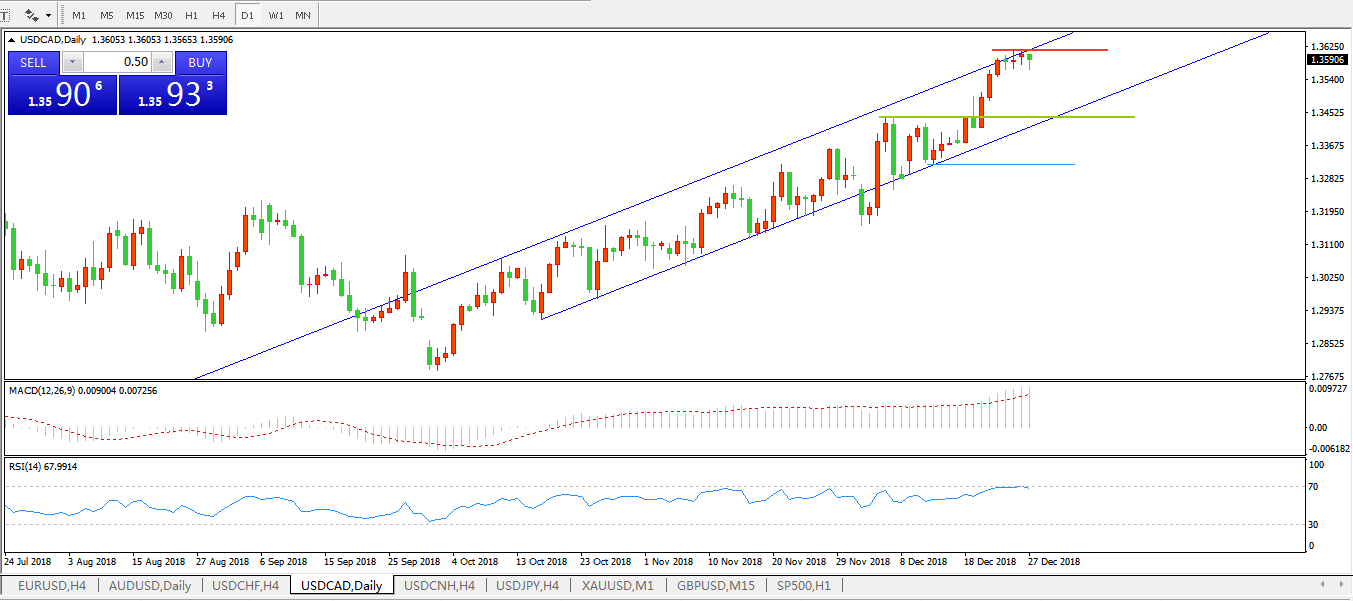 美元兑加元USDCAD日线图