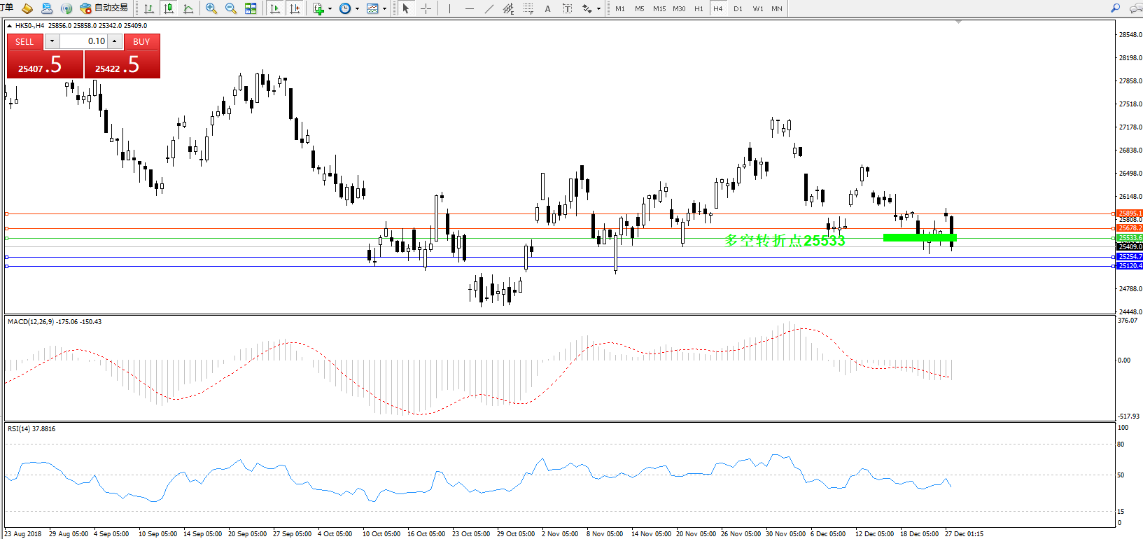 技术点评:受其外围影响,空头尚未止步,MACD指标在0轴下方有延续迹象,RSI指标50均衡线拐头下行;