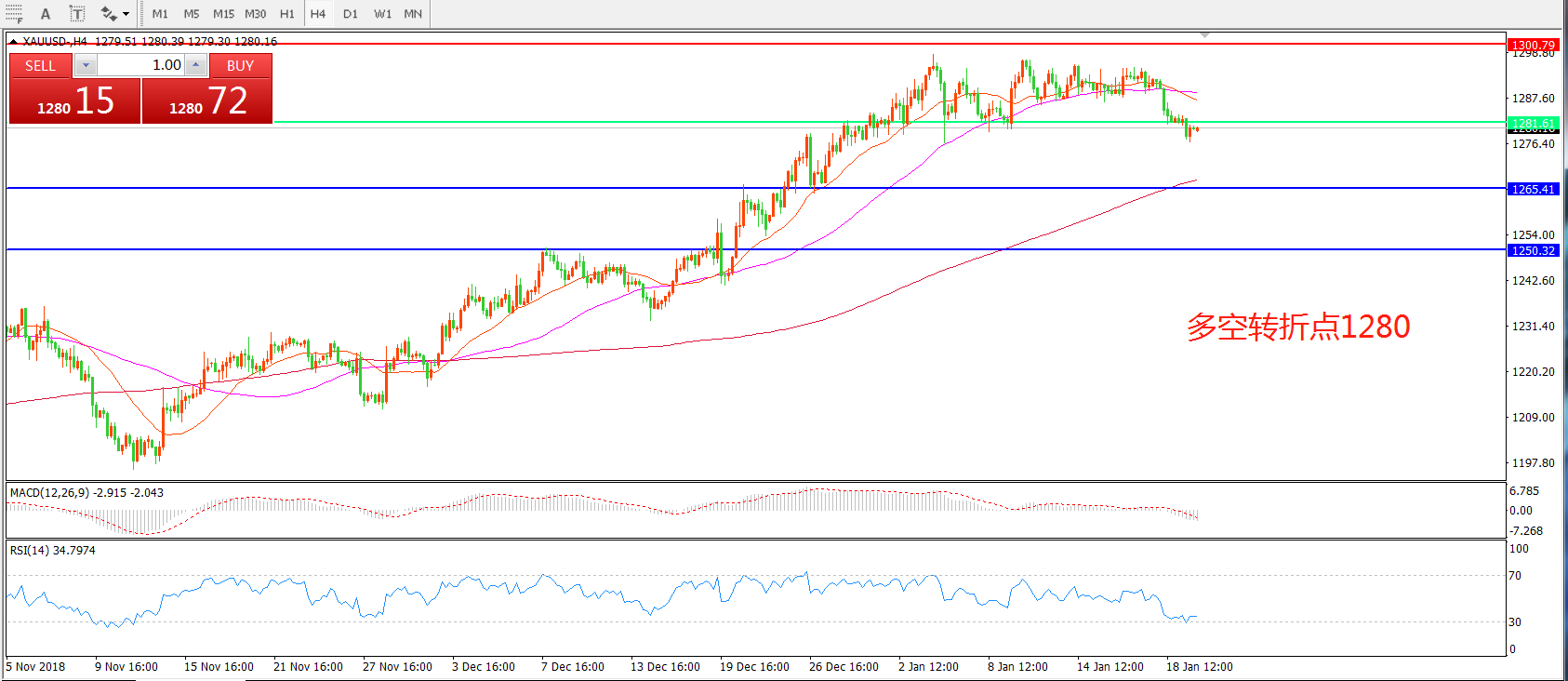 周一为美国马丁路德日,美股休市,黄金市场提前闭市。金价在触及日内低位后反弹缩减跌幅,但仍在运行在1280关口下方。英国首相梅在下议院给出了下一轮脱欧谈判的路线图。她反对将脱欧日从3月29日延期,也反对第二次脱欧公投。她承诺更有灵活性、开放和包容,会给予议会更多英欧未来关系的谈判参与权。