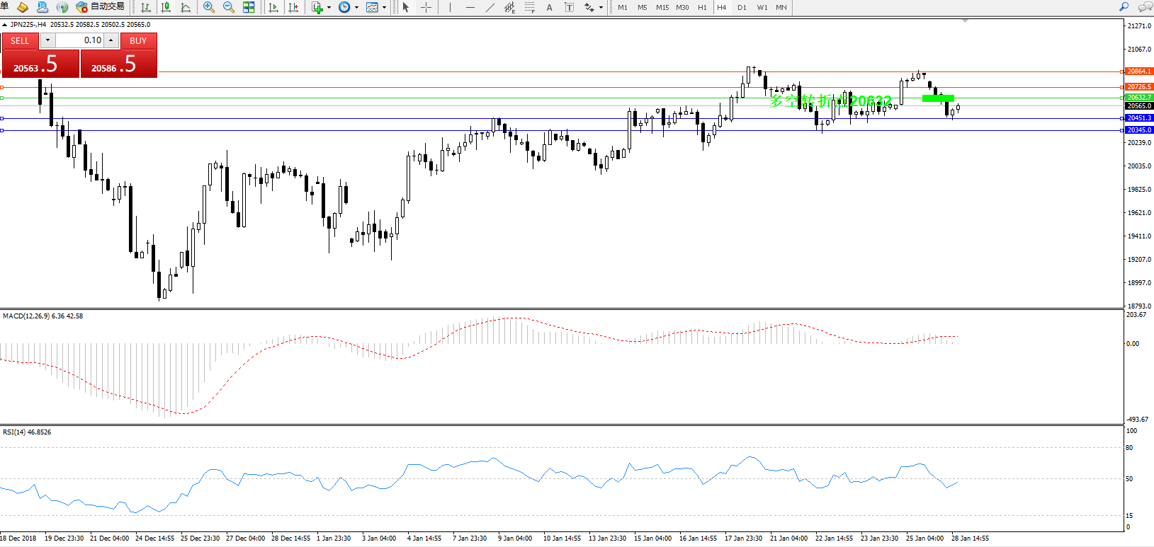 日经指数JPN225——4小时K线图: