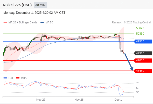 在 49950 之下,看跌,目标价位为 49000 ,然后为 48480 。