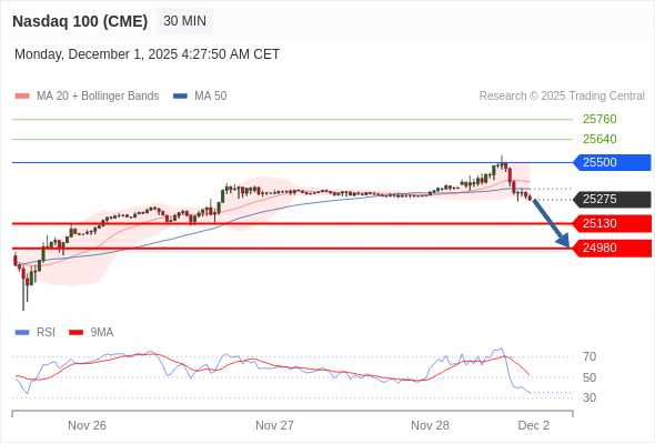 在 25500 之下,看跌,目标价位为 25130 ,然后为 24980 。
