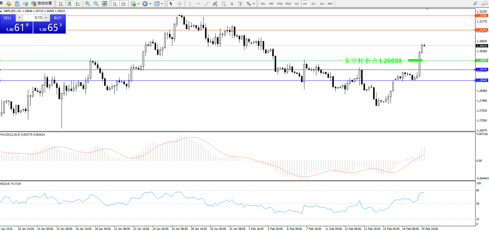 交易策略:1.29899上方看涨,目标1.31362、1.32055