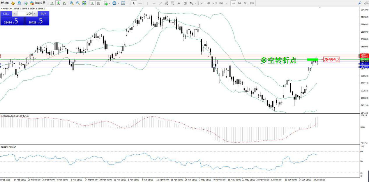 恒指HK50 ——4小时K线图显示: