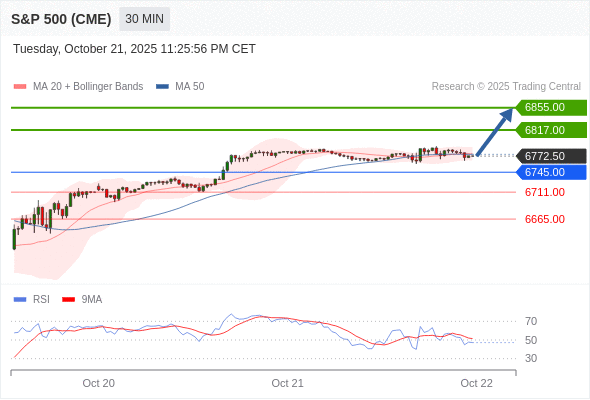 在 6745.00 之上,看涨,目标价位为 6817.00 ,然后为 6855.00 。