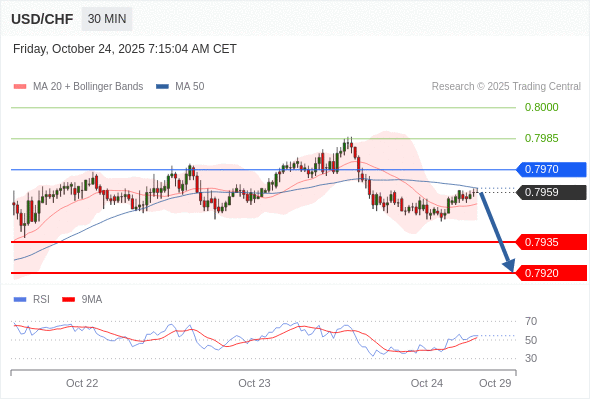 在 0.7970 之下,看跌,目标价位为 0.7935 ,然后为 0.7920 。
