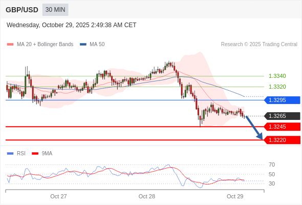 在 1.3295 之下,看跌,目标价位为 1.3245 ,然后为 1.3220 。