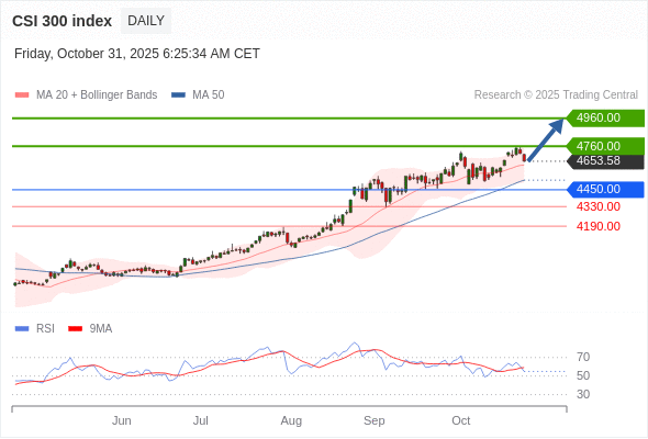 在 4450.00 之上,看涨,目标价位为 4760.00 ,然后为 4960.00 。