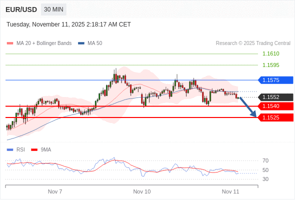 欧元/美元 当日内: 期待1.1540。