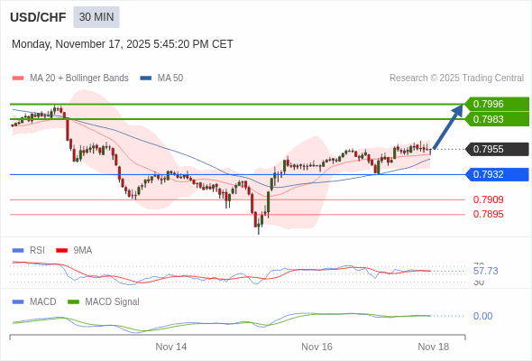 交易策略: 看涨,当 0.7932 为支撑位,目标定在0.7996。