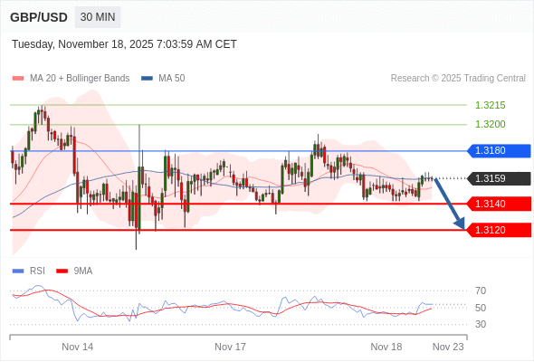 交易策略: 在 1.3180 之下,看跌,目标价位为 1.3140 ,然后为 1.3120 。