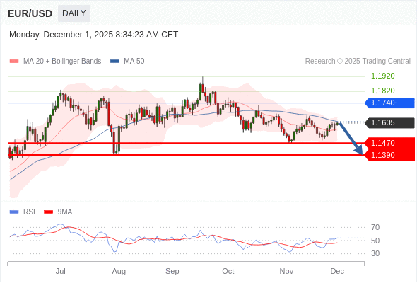在 1.1740 之下,看跌,目标价位为 1.1470 ,然后为 1.1390 。