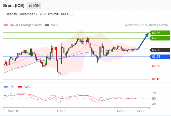 在 62.95 之上,看涨,目标价位为 63.65 ,然后为 63.85 。
