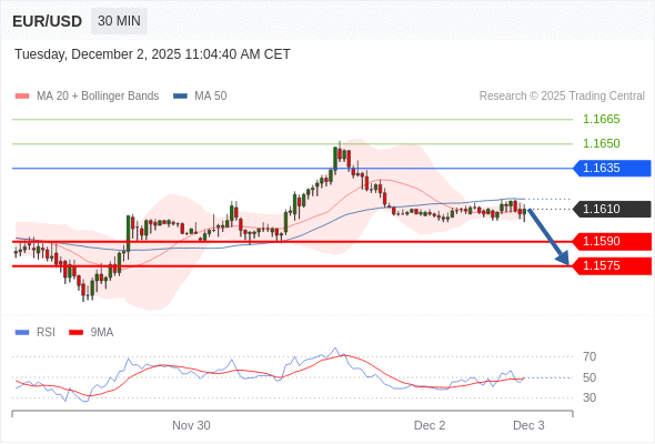 交易策略: 在 1.1635 之下,看跌,目标价位为 1.1590 ,然后为 1.1575 。