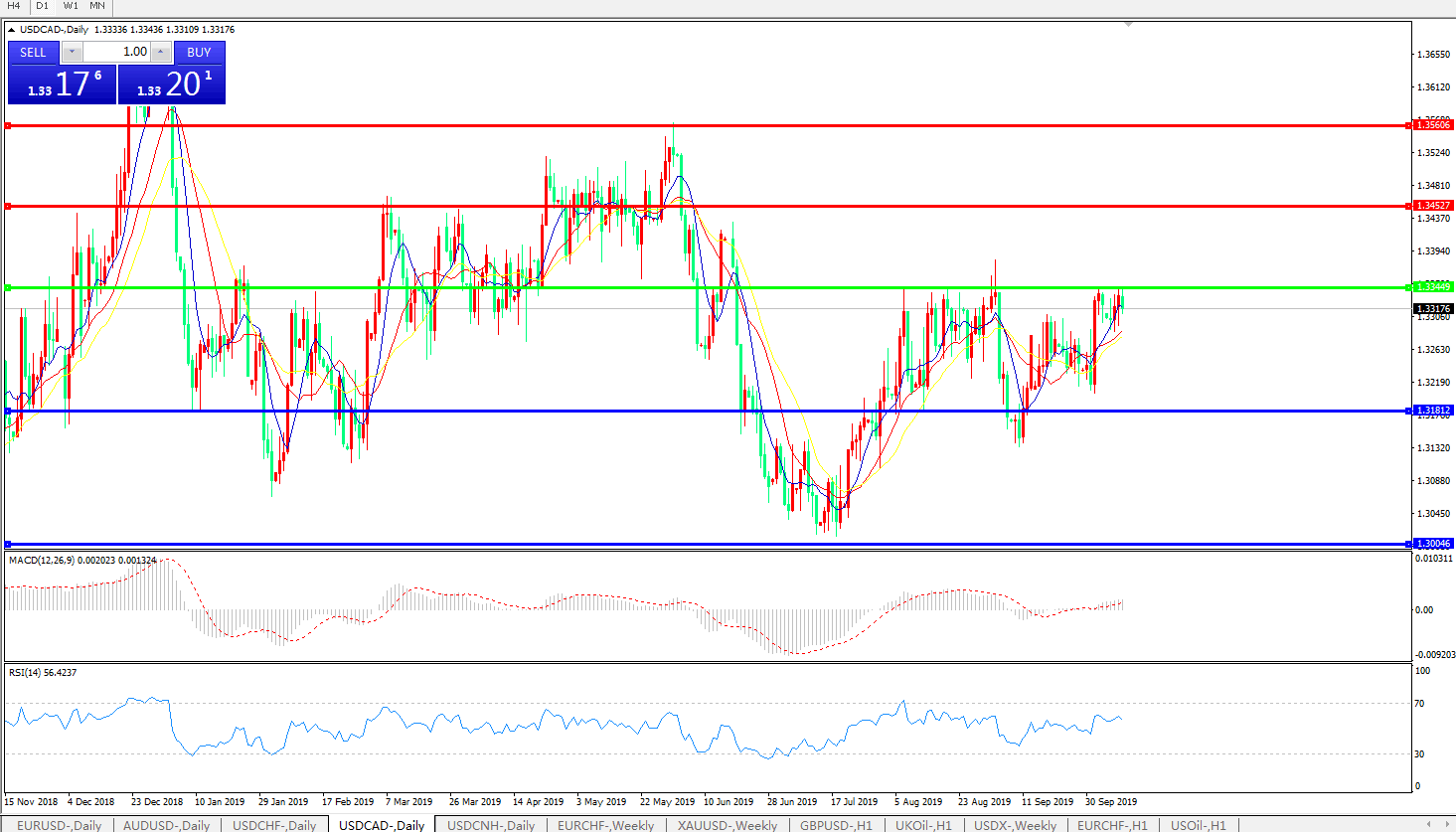 美元兑加元USDCAD    日线