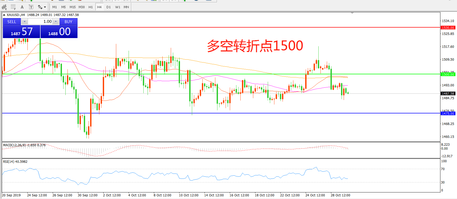 周二(10月29日),英国工党决定支持提前大选,引发了市场广泛的乐观情绪。市场认为大选之后,英国有可能顺利脱欧,这令硬脱欧的风险基本已完全消除,避险情绪的消退导致金价小幅回落,最终收报1487.24美元/盎司。但本周市场的重点还是美联储利率决议与周五的非农数据,在重磅数据公布之前,金价维持窄幅的概率较大。美联储从周二开始召开为期两天的货币政策会议,市场普遍预计美联储将在周三宣布降息25个基点,一旦在这个过程中鲍威尔释放了任何鹰派的信号,都有可能对金价走势造成重大冲击。