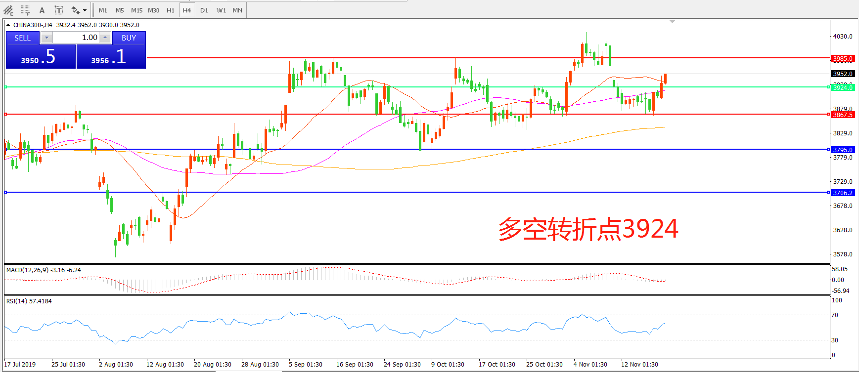 多空转折点:3924.00