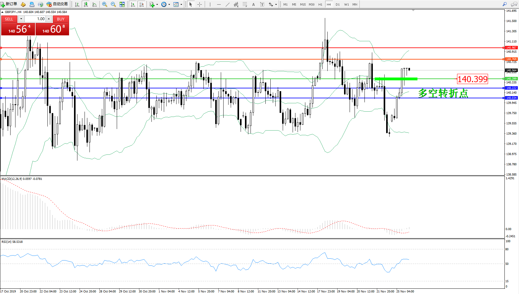 交易策略:140.399上方看涨,目标140.769、140.987