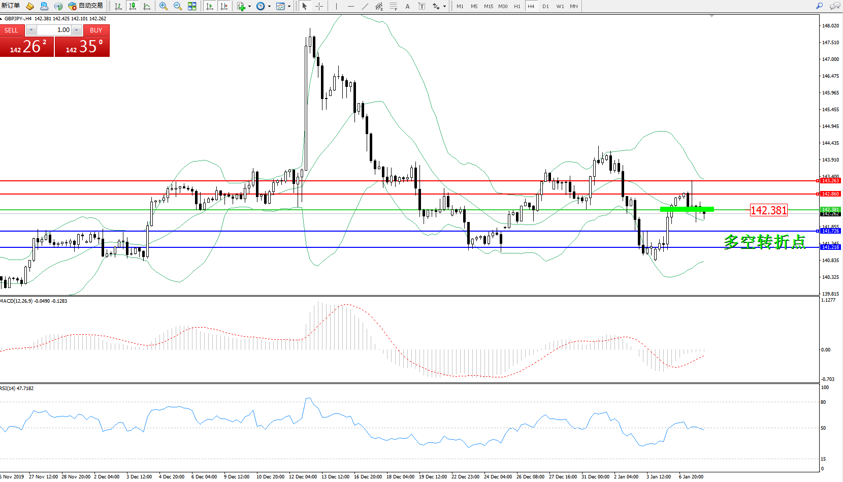 交易策略:142.381下方看跌,目标141.726、141.218