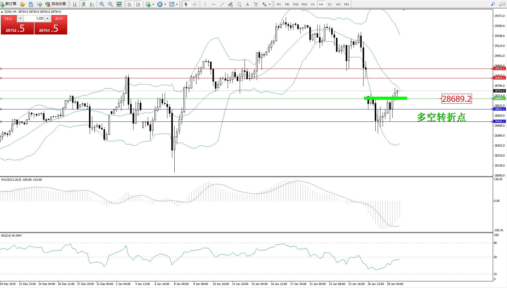 道琼斯指数1月28日(周二)收盘上涨186.80点,涨幅0.65%,报28722.58点。市场对疫情的担忧仍挥之不去,但尽管存在这些担忧,仍有一部分人愿意逢低买进;耐用品订单数据好于预期,虽然美国12月份整体耐用品订单增长,但商业设备订单意外下滑;消费者信心指数升至五个月高点;20城房价创9个月来最大涨幅。因此这可能增加了美联储在联邦公开市场委员会(FOMC)会议上不持鸽派观点的可能性,从而给价格带来压力。