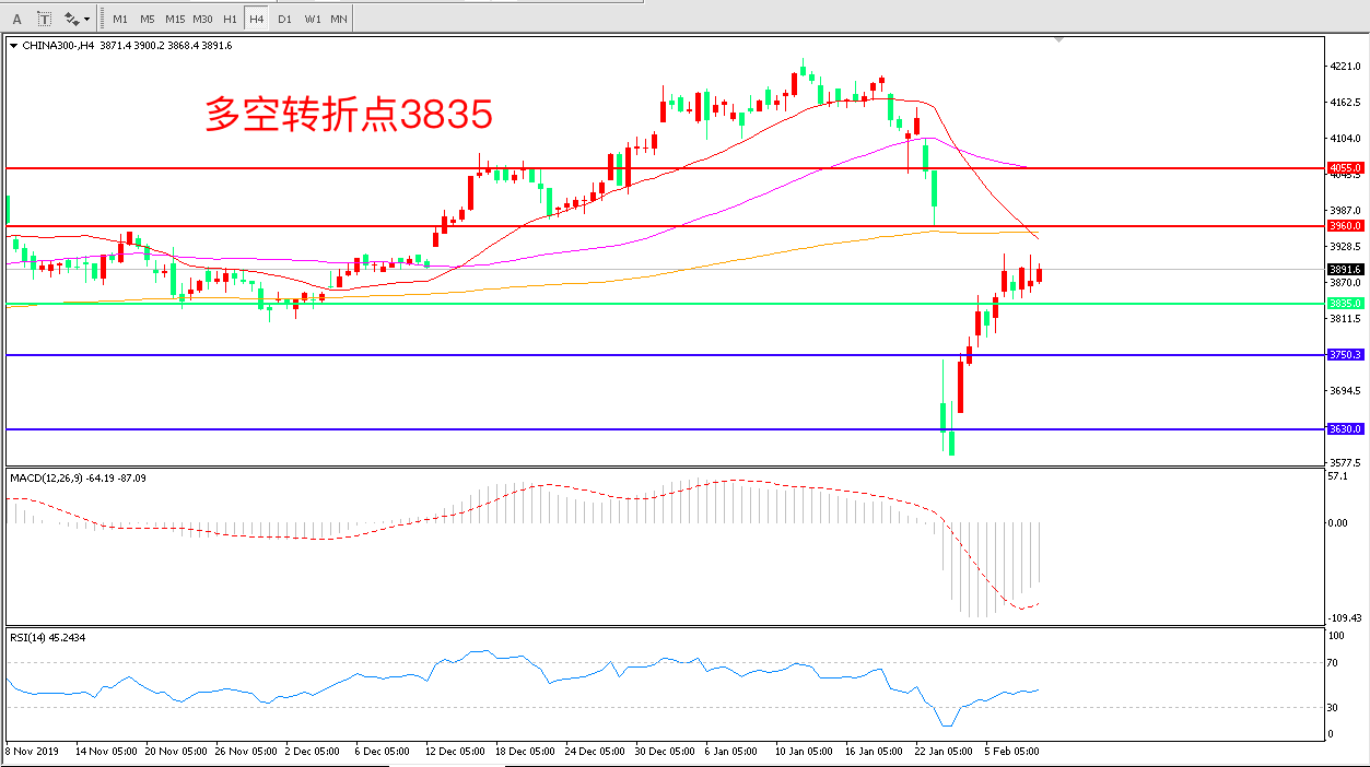 沪深300  CHINA 300   4小时图