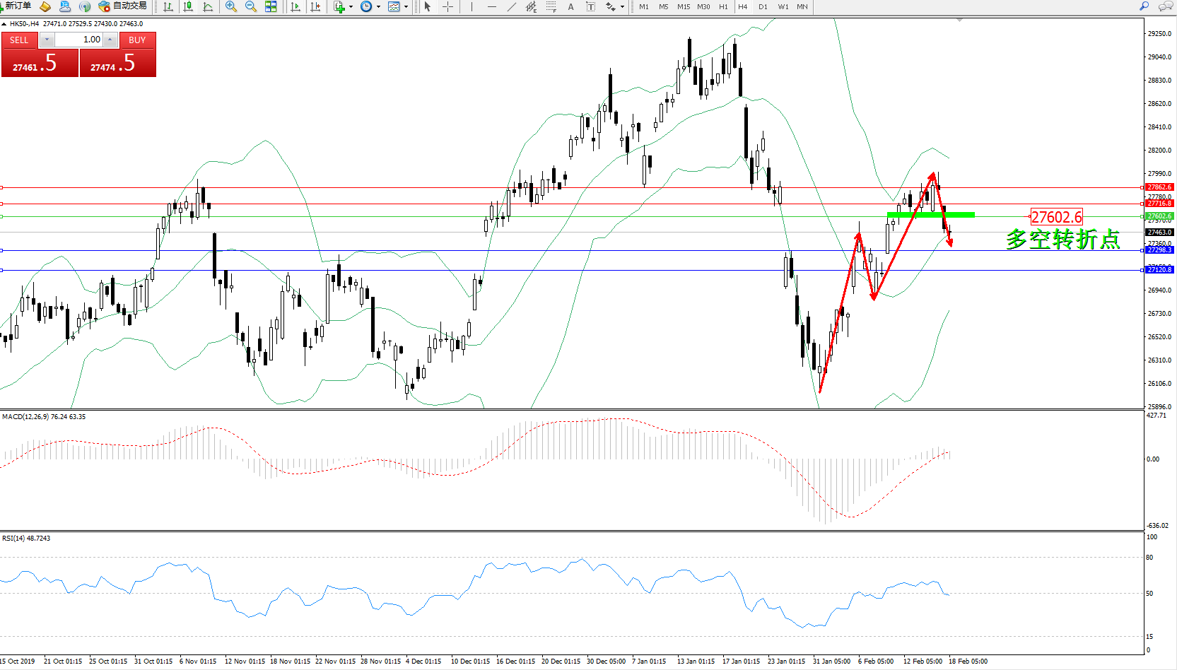 香港恒生指数2月18日(周二)收盘下跌429.40点,跌幅1.54%,报27530.20点;截至今日收盘,恒指大市成交额报1013.86亿港元(上一交易日成交额为956.04亿港元)。港股市场低开低走,全日表现低迷,主要股指均大跌超1.3%。前期强势的手机股、半导体等热门板块下跌,蓝筹权重股全线下跌。美国政府正在考虑一项提案,阻止通用电气公司继续为中国商飞C919客机提供发动机,原因是担心中方可能会对发动机进行逆向工程仿制,损害美国商业利益。中方敦促美方客观公正对待中国企业和中美正常商业合作,多一些积极推动,少一些无理搅局。