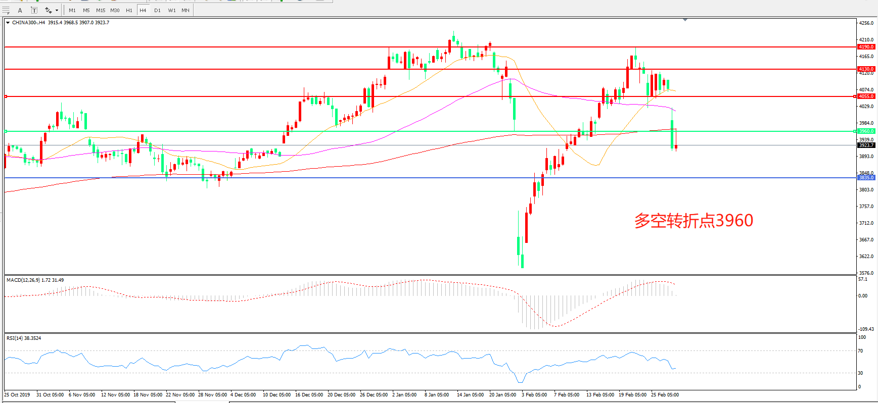 沪深300  CHINA 300   4小时图