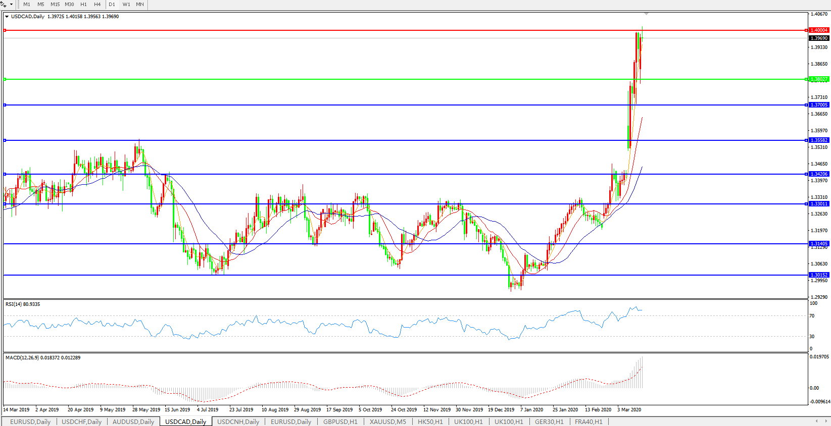 美元兑加元USDCAD 日线图: