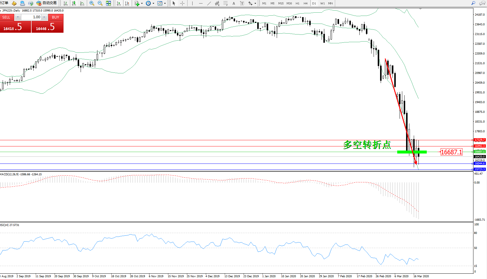日经225指数3月18日(周三)收盘下跌306.53点,跌幅1.80%,报16705.00点。病毒引发的冲击与金融危机不同,当务之急是保证融资和市场稳定,若经济进一步恶化,将毫不犹豫地进一步放宽措施,若控制病毒耗时过长,可能严重影响经济,无论当前发生什么都不同于雷曼危机时,但企业可能会因需求、产出下降而面临资金紧张,日本最终将从病毒危机中复苏,现在需要对家庭和企业提供支持,以便在卫生风险被遏制时经济迈向V型复苏道路。