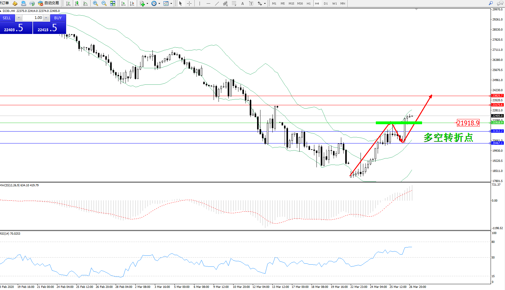 道琼斯指数326日(周四)收盘上涨1351.60点,涨幅6.38%,报22552.17点。美国股市再度上涨,因投资者推测国会即将通过的2万亿美元救助计划将缓和冠状病毒大流行对经济的冲击。道琼斯工业平均指数创下1931年以来最大三日涨幅,目前较323日的低点高出21%,得益于波音公司的又一次大幅上涨。上周首次申领失业救济人数激增至创纪录的328万人,因很多企业为了防疫而关门;尽管数字超出预期,但美国政府的帮助弥补了对工人和企业的损害。因遏制冠状病毒疫情蔓延的严格措施令美国经济活动陷入停止状态,引发一波裁员潮,这可能终结美国历史上持续时间最长的就业热潮。美联储主席鲍威尔还试图向公众保证,中央银行应对危机不会弹尽粮绝。