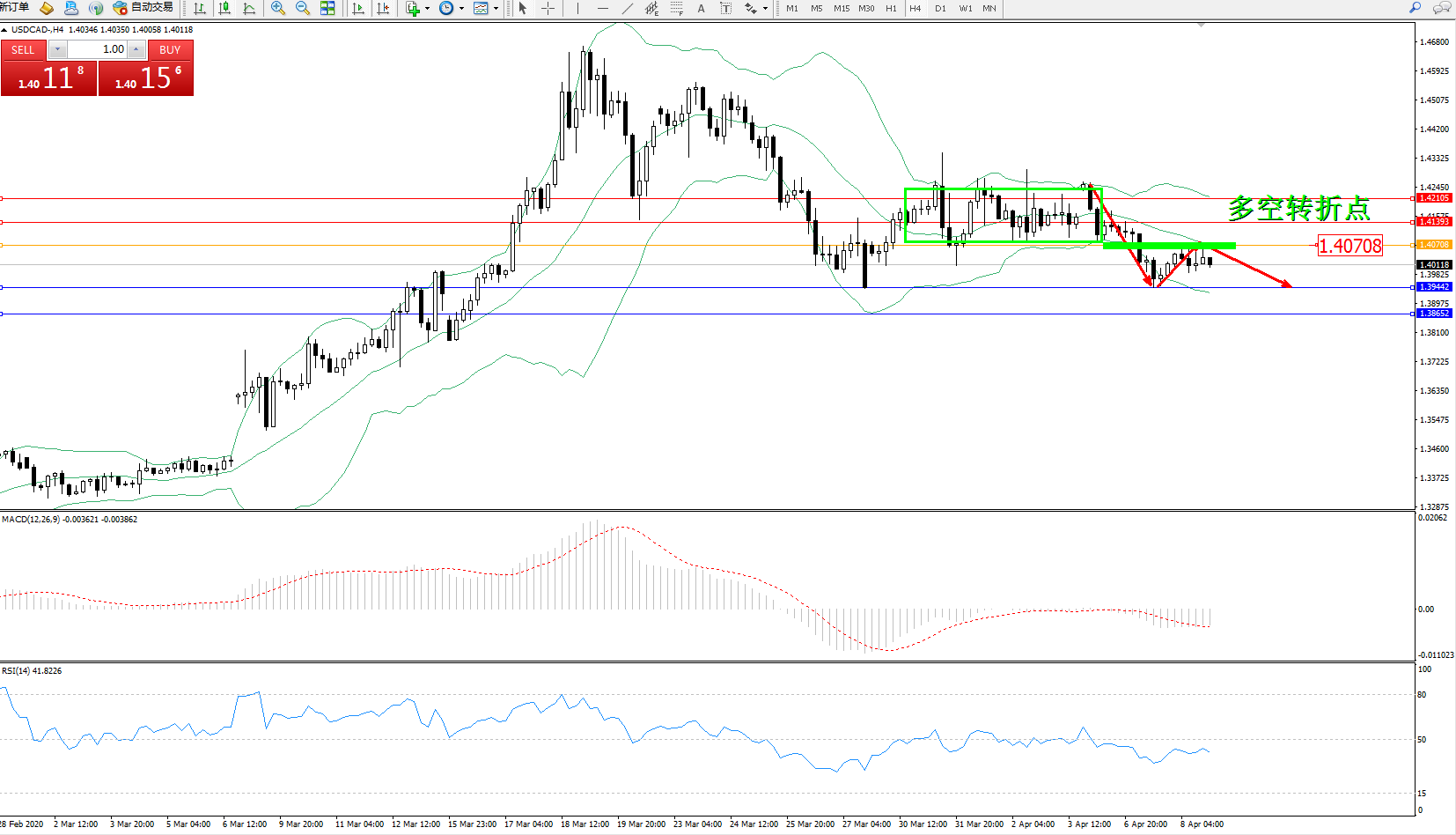 交易策略:1.40708下方看跌,目标1.394421.38652