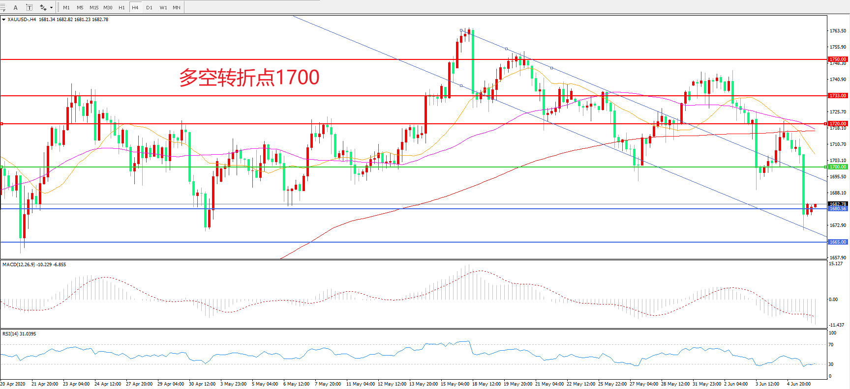 交易策略: 在1700.00之下看跌,目标1680.00 1665.00