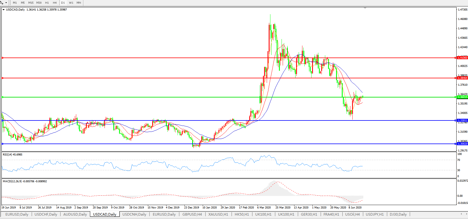 交易策略:在1.3600之下,看跌,目标价位为1.3300、1.3000