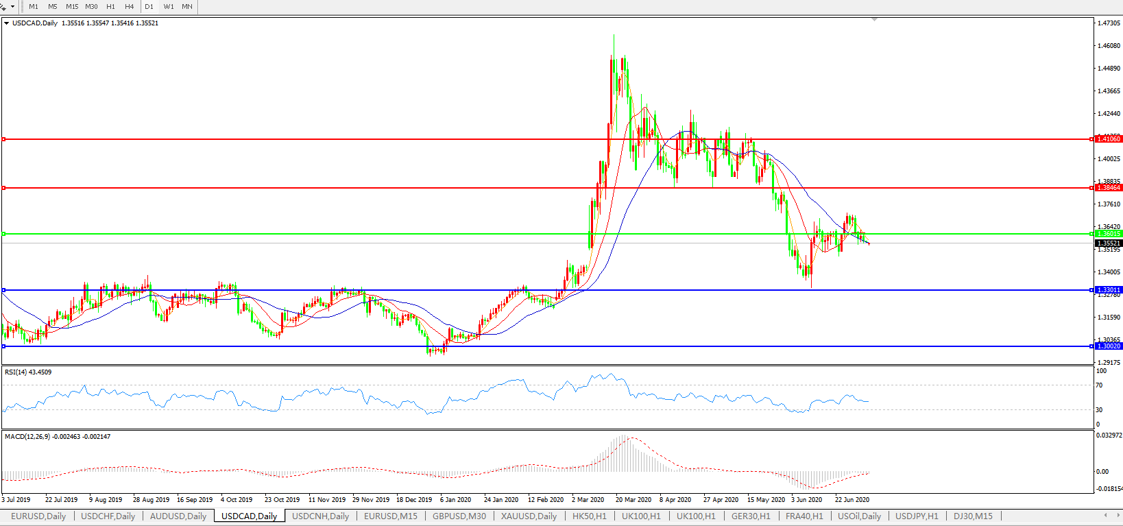 美元兑加元USDCAD 日线图: