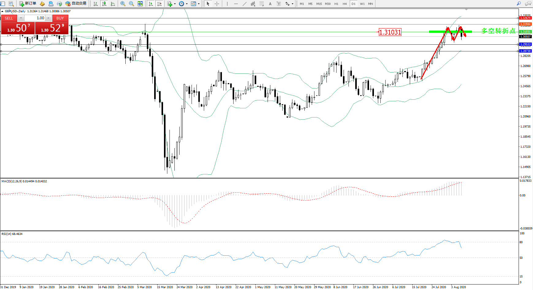 备选策略:1.31031上方看涨,目标1.31944、1.32674