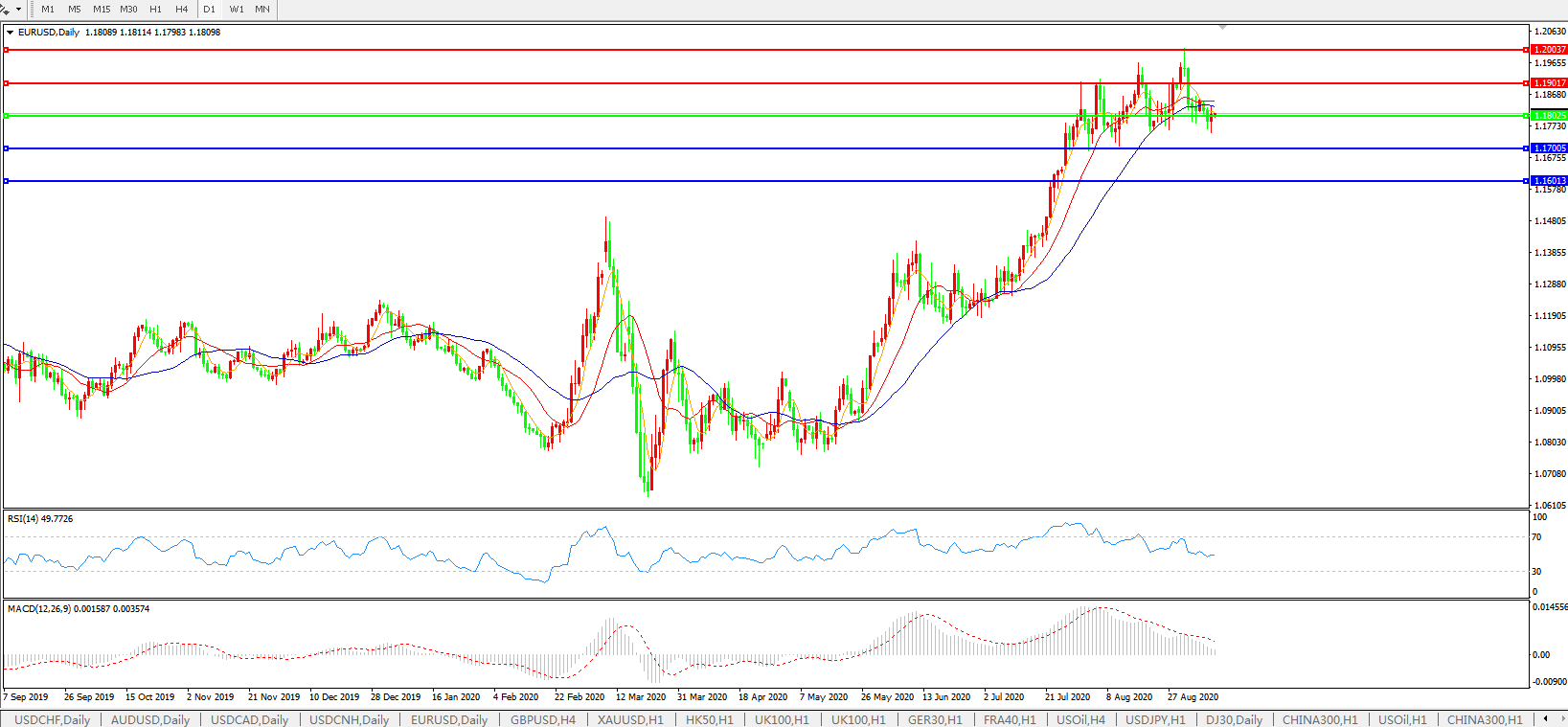 交易策略:1.1800下方看跌,目标1.1700、1.1600