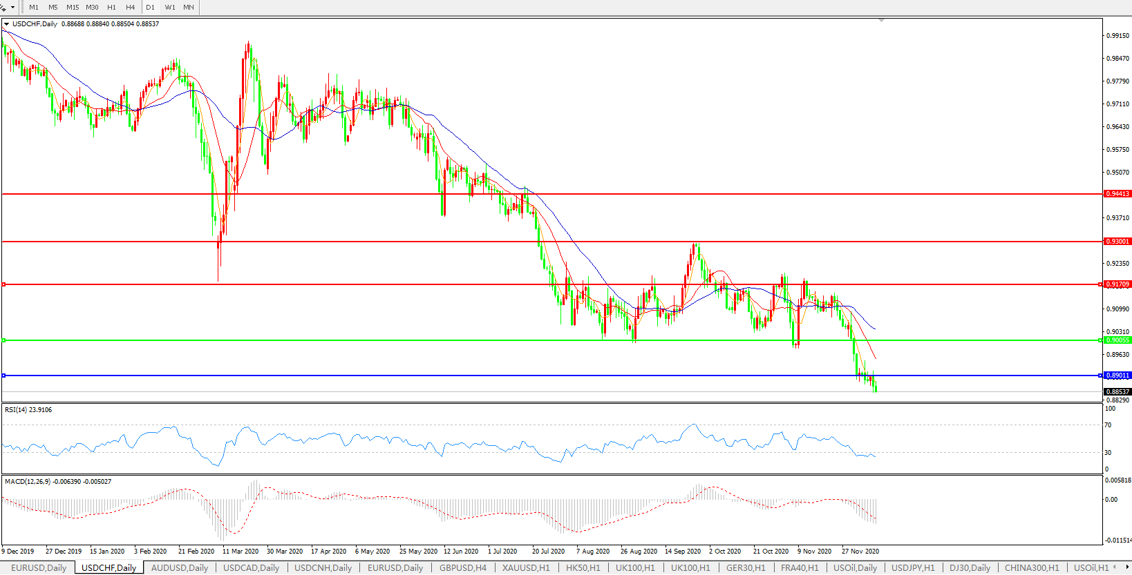 技术面简析:日线图均线发散下行,汇价持续下行,MACD运行于0轴下方且量能持续放量,RSI缓步走弱,预计短期汇价大概率将进一步下行。