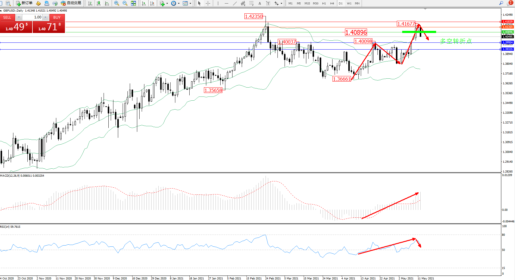 交易策略:1.40896下方看跌,目标1.39954、1.39335