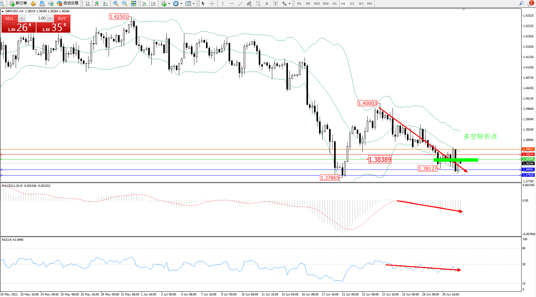交易策略:1.38389下方看跌,目标1.38091、1.37928