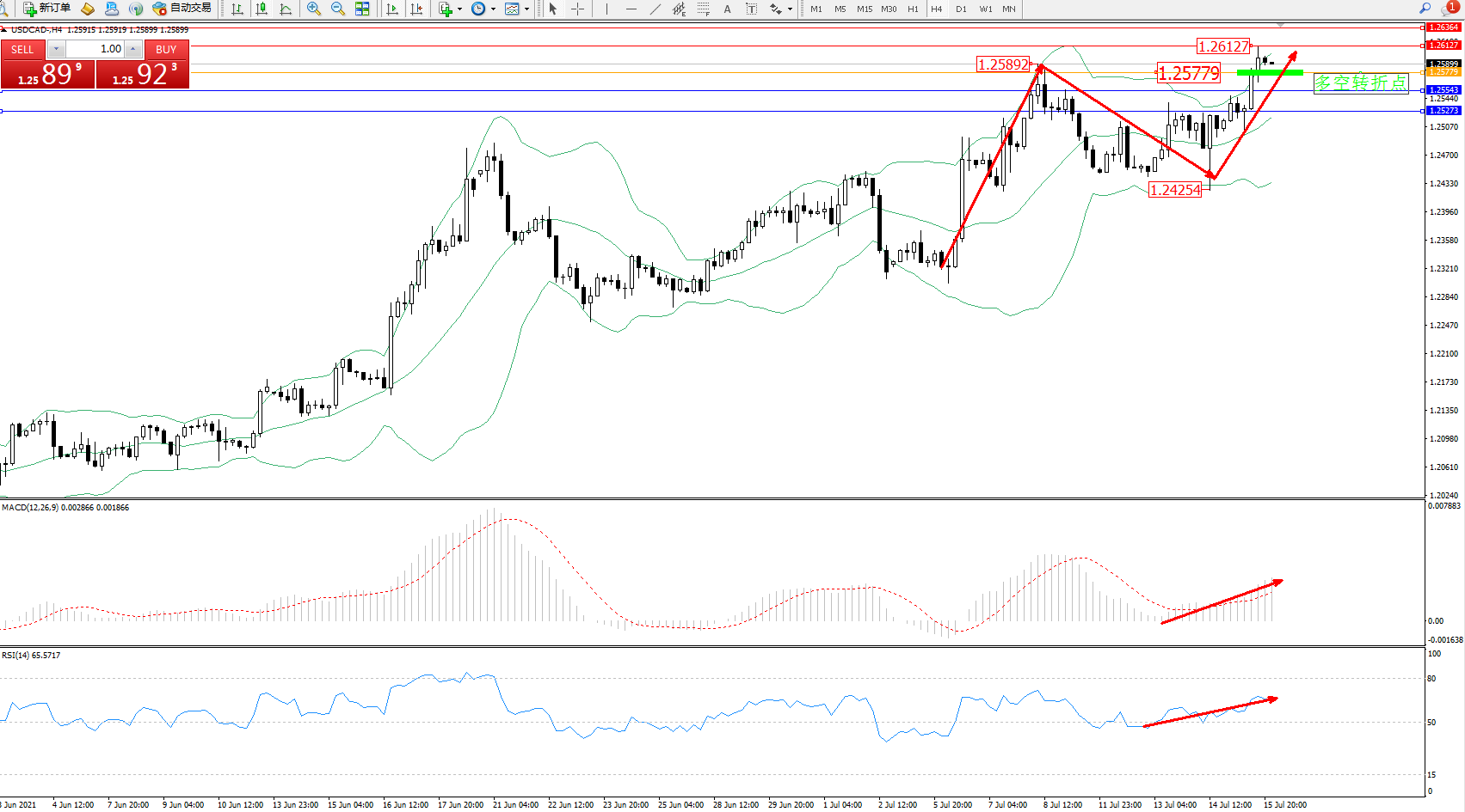 美元兑加元高位不断上移至1.25911附近震荡,加拿大央行的基本面将继续吸引市场:作为发达国家中最强硬的央行之一;强劲的经济复苏,以及在主要经济体中至少注射一剂疫苗的人口比例最高(70%);即使在动荡的OPEC+会议之后,油价仍保持坚挺;如果关于加拿大央行将在年底前结束资产购买计划的预期是正确的,市场将倾向于将加拿大加息周期的开始时间提前,应该会使加元的套息交易更具吸引力,仍然认为美元兑加元到2021年底将跌破1.20。