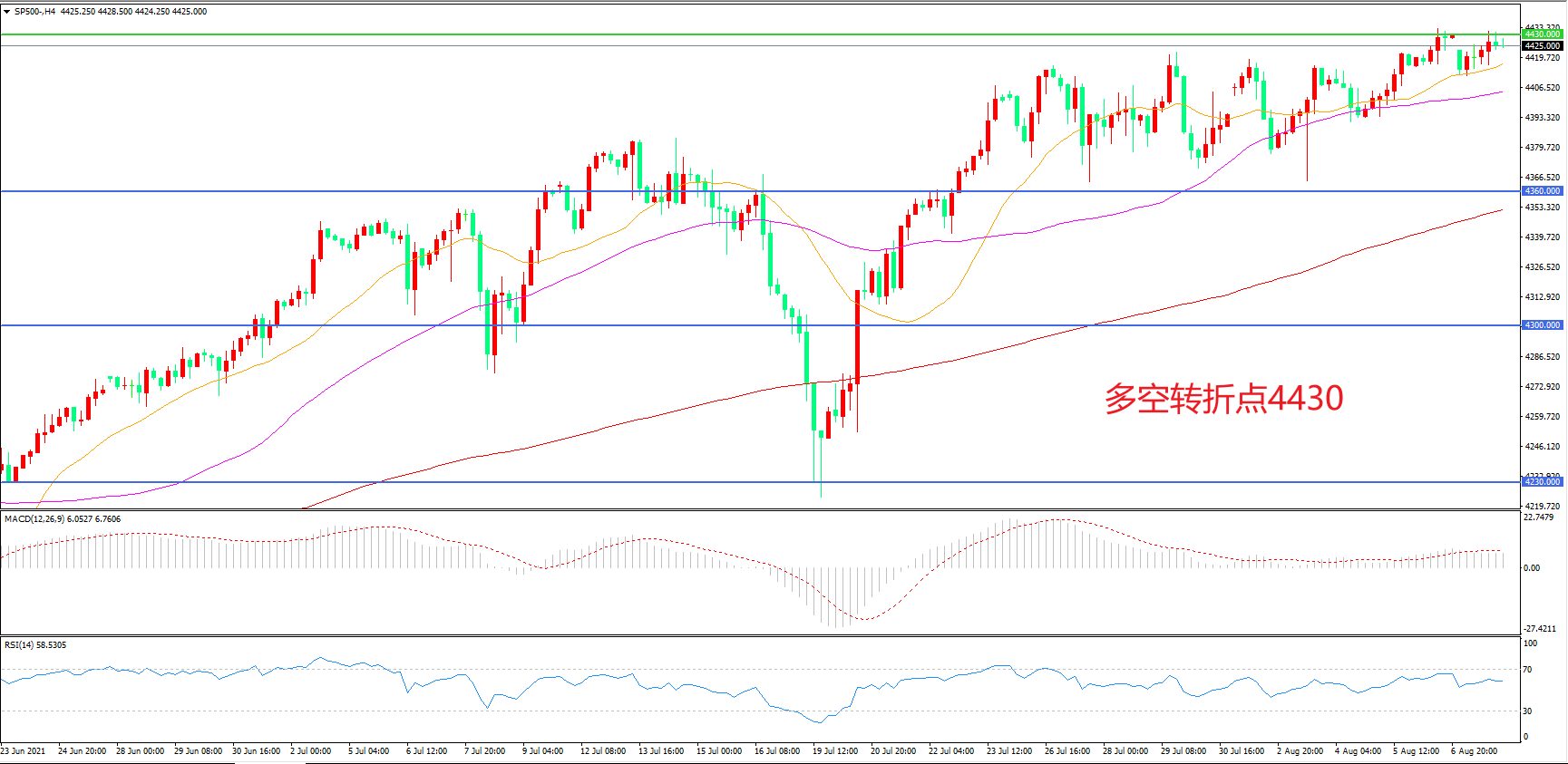 多空转折点:4430.00