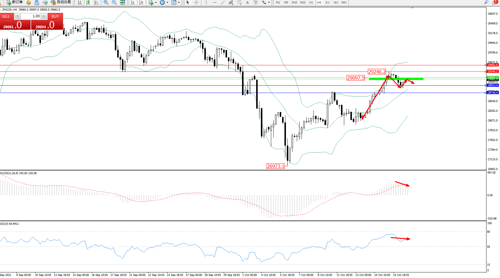 日经225指数10月18日(周一)收盘下跌59.13点,跌幅0.20%,报29009.50点。日本首相岸田文雄称:没有考虑改变消费税,经济刺激要灵活运用财政资源,可以快速派发现金,提高企业税必须慎重考虑,气候变化是个大问题,但必须保持能源价格和供应的稳定,在日本面临新冠疫情打击之际,必须发行日本国债来为支出提供资金,依靠政府来保持对日本财政的信心,需要仔细讨论资本利得税和企业税,如果突然提高税收,经济可能会受到伤害,所以要仔细考虑。