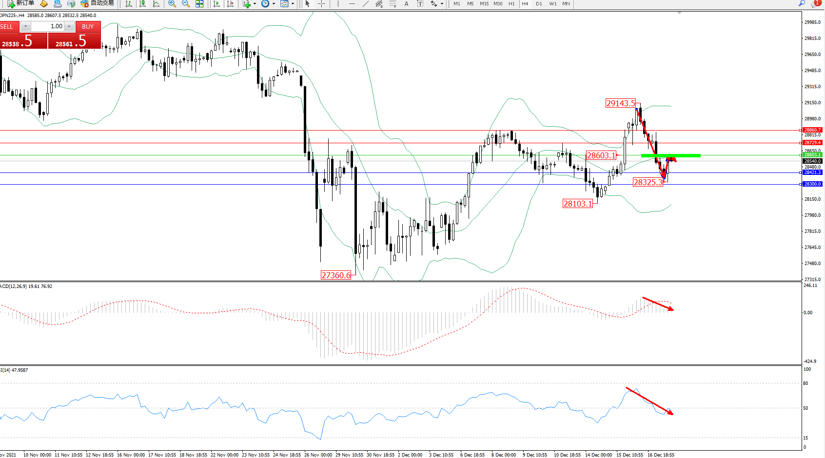 日经225指数12月17日(周五)收盘下跌541.32点,跌幅1.86%,报28525.00点。日本央行决定延长新冠疫情特殊援助6个月,直到2022年9月,继续支持融资,主要针对中小型企业。其中的援助措施包括购买商业票据和企业债,日本将在2022年3月前维持商业票据和企业债的持有量在20万亿不变。从2022年4月起,日本央行将商业票据和企业债持有量逐渐减少到疫情的水平,即商业票据约2万亿日元,企业债券约3万亿日元。