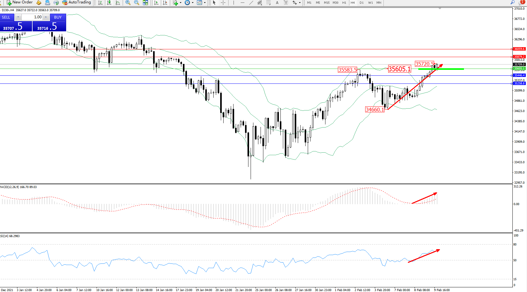 技术点评:多头动力延续布林带指标上轨附近节点至35720附近遇阻整理,短期多头动力有进一步上移态势,布林带指标呈张口走势持续中,MACD指标处于多头区域维持震荡上移,RSI指标处于多头区域持续整理上行中;