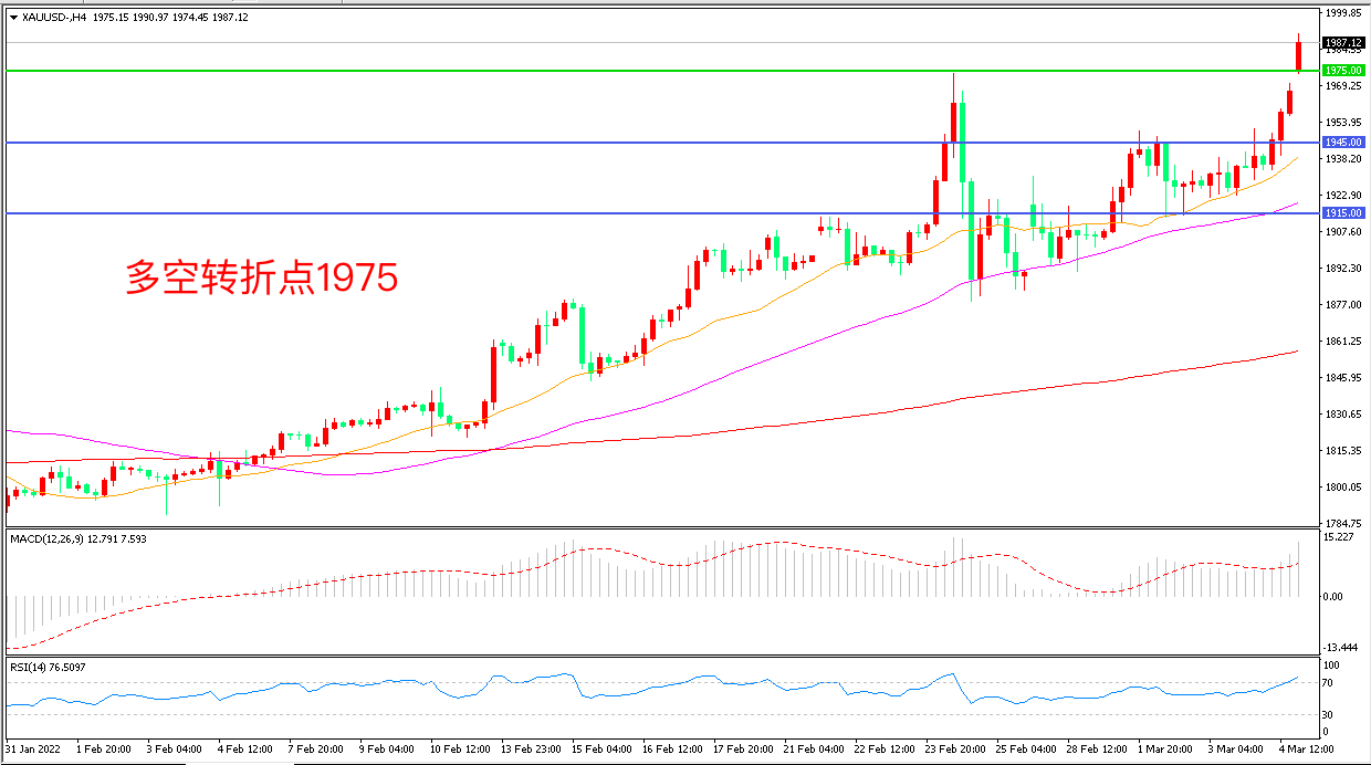 上周,由于投资者担心通胀飙升与俄乌冲突对经济的影响,黄金等避险资产收到热烈追捧,周一(3月7日),现货黄金跳空高开,截至发稿前收报1986.23美元/盎司。本周,美国2月CPI数据将于3月10日公布,在非农数据奠定良好基础的情形下,CPI数据再次成全场焦点,其表现是高是低将左右美联储前进方向与金价的下一步走势,务必重点关注。